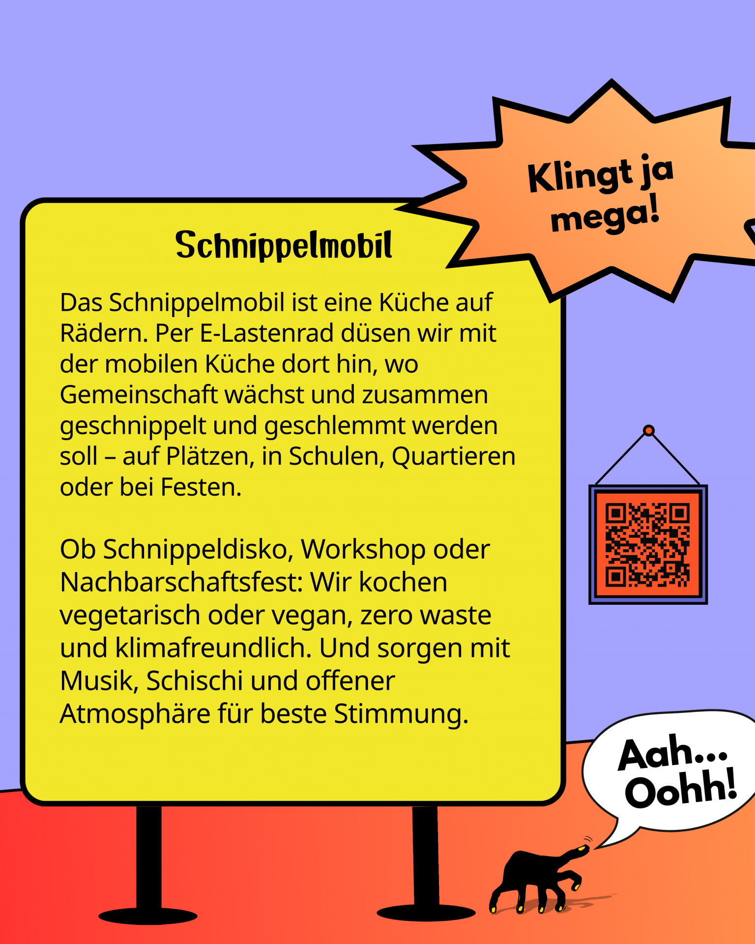 Ob Schnippeldisko, Workshop oder Nachbarschaftsfest: Wir kochen vegetarisch oder vegan, zero waste und klimafreundlich – mit Solarstrom, Fahrradgenerator und viel guter Laune. Wir laden Menschen aller Generationen und Hintergründe ein, Wissen zu teilen, neue Rezepte auszuprobieren, kulinarische Highlights zu schaffen und dabei das Klima zu schonen.